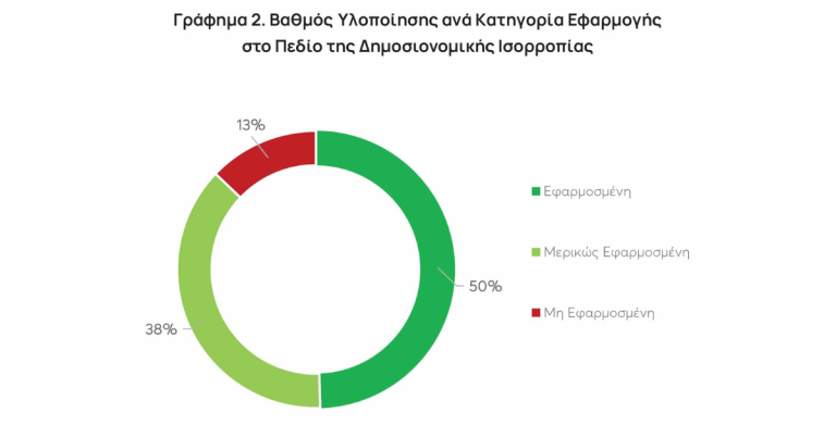 Το πεδίο της δημοσιονομικής ισορροπίας καταγράφει το υψηλότερο ποσοστό πλήρους εφαρμογής σε σύγκριση..
