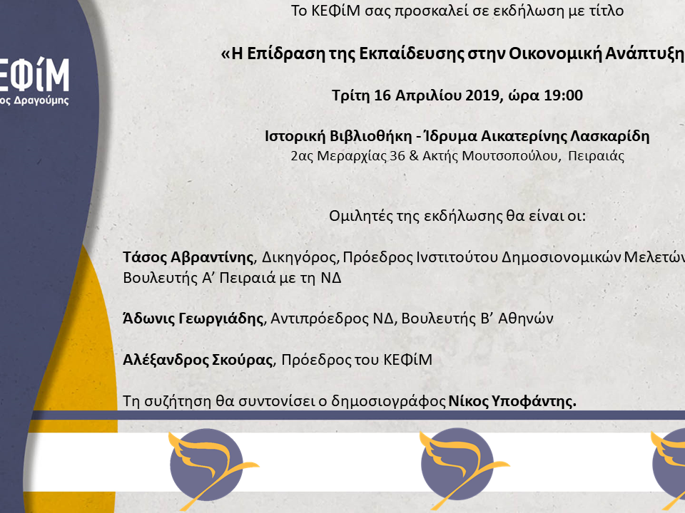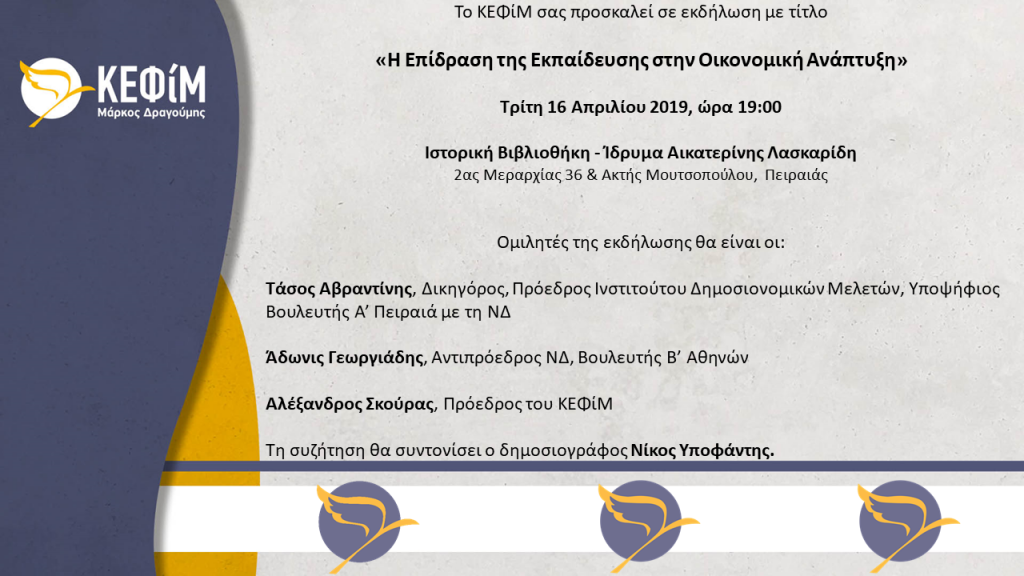 The Center for Liberal Studies – Markos Dragoumis organizes an event titled “The impact of education on economic growth” on Tuesday, April 16 2019, from 19:00 […]